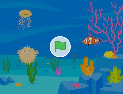 Ed ecco che basterà cliccare in alto a destra sulla bandierina verde e i nostri pesci si muoveranno nell’acquario virtuale.
