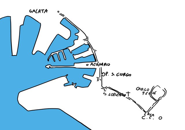 Dal momento che mi sembrava un tantino spoglia la mappa, ho deciso di introdurre anche quell’area verde che mi sembrava dare una nota di colore. Si possono mettere anche triangolini verdi in vie alberate, casette o magari un disegnino di forchetta e coltello se c’è un ristorante famoso…insomma aggiunte se ne possono fare. Per il momento però i luoghi stabiliti son questi e li abbiamo messi.